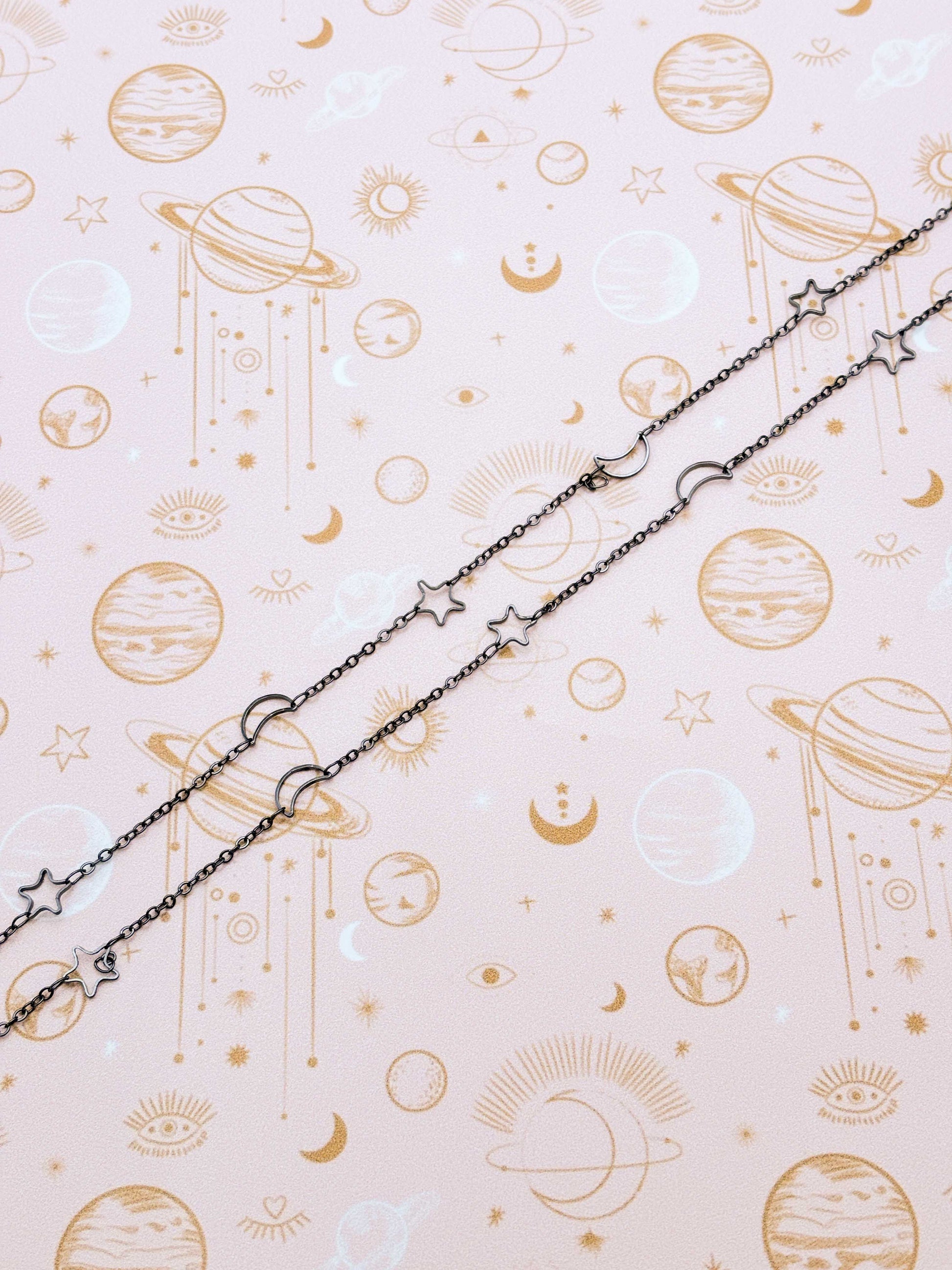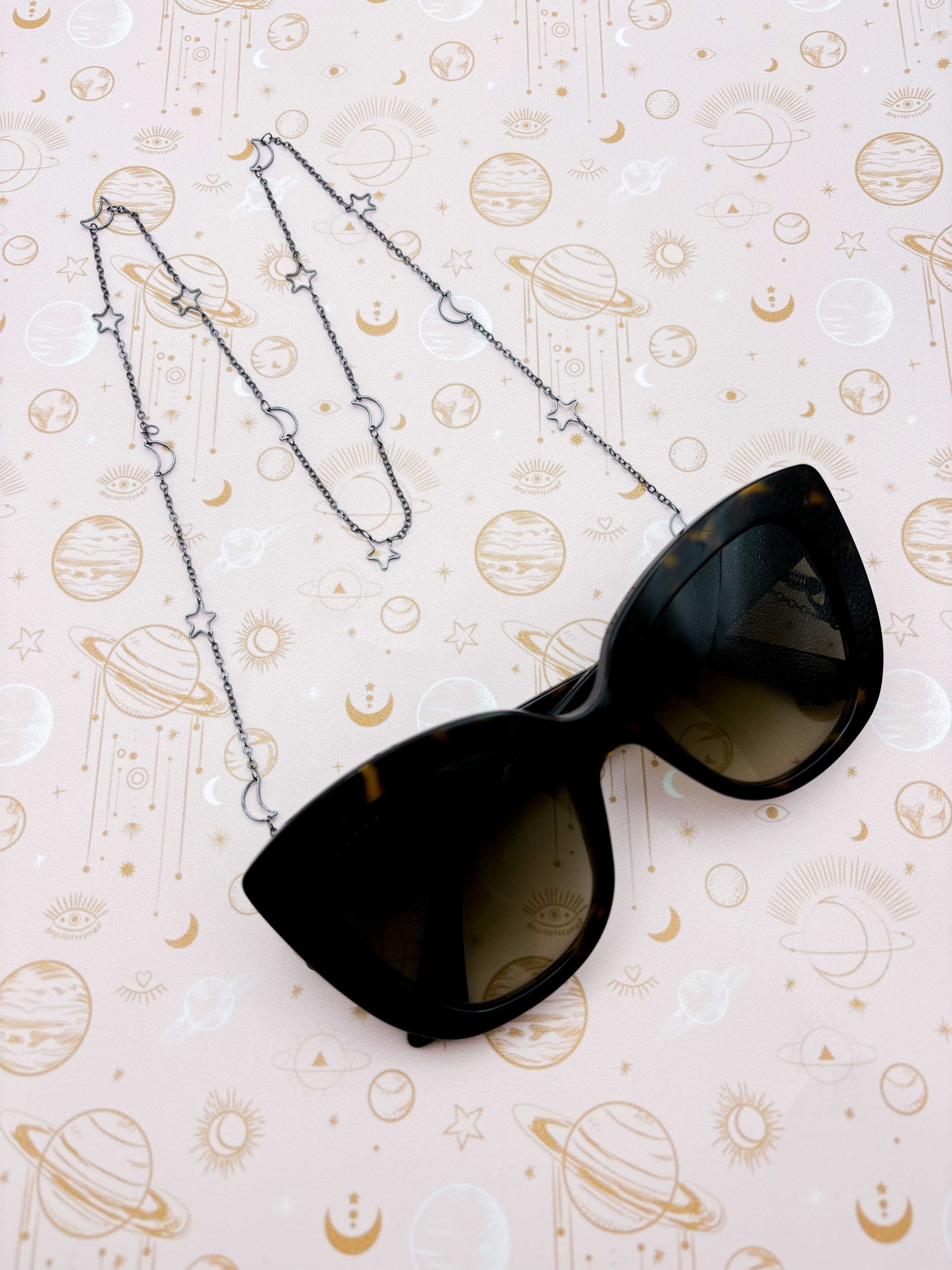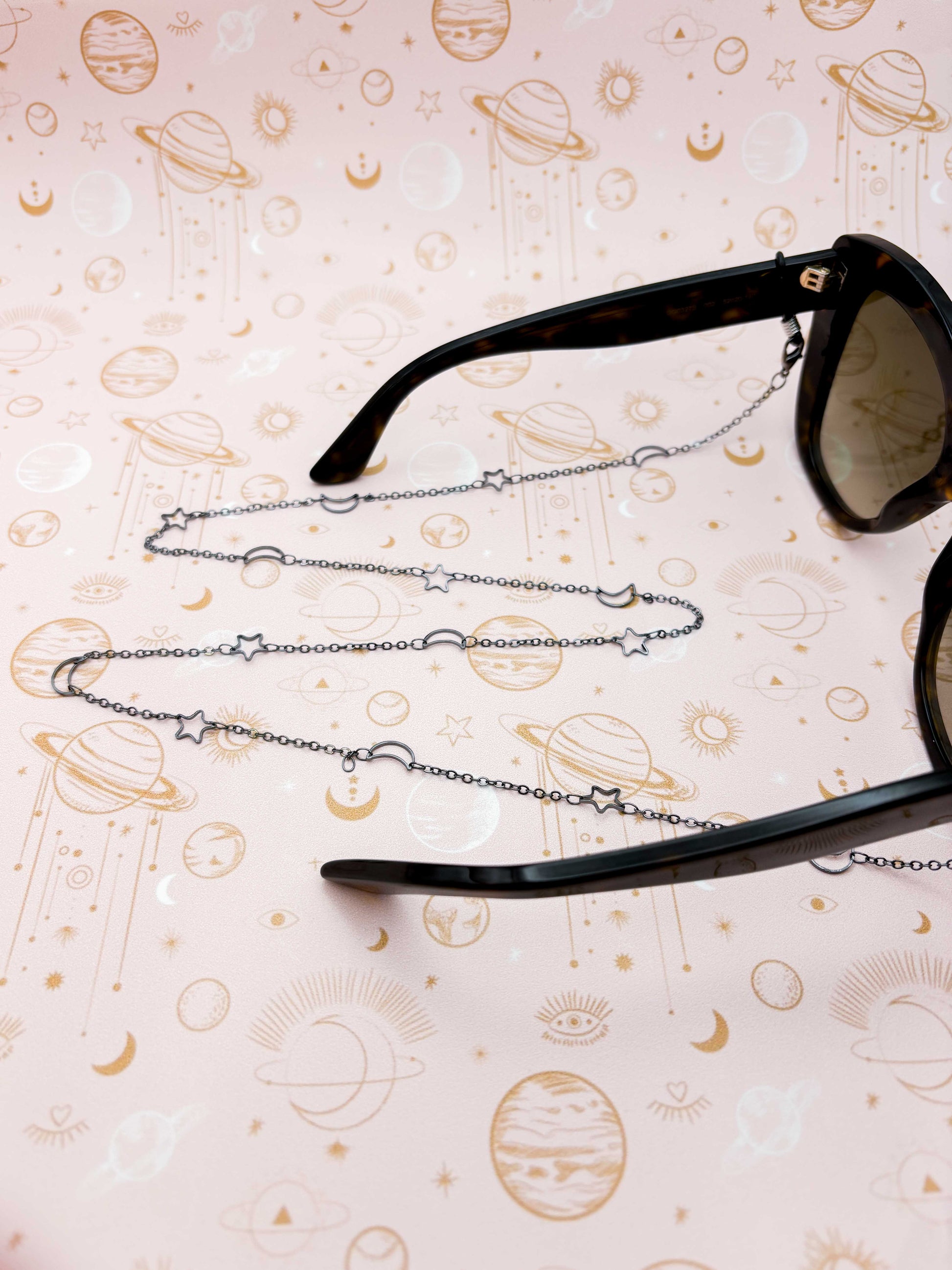 Gunmetal Moon and Stars Glasses Chain