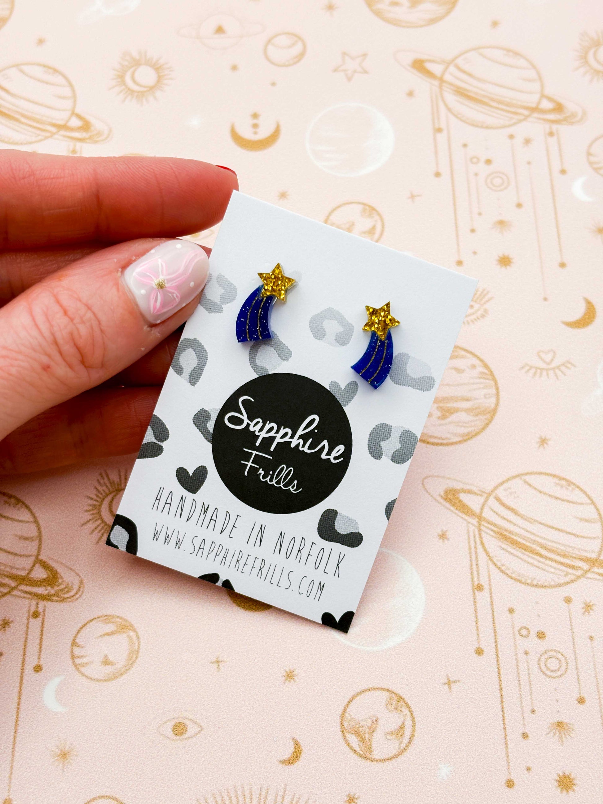 Mini Gold and Blue Glitter Acrylic Shooting Star Stud